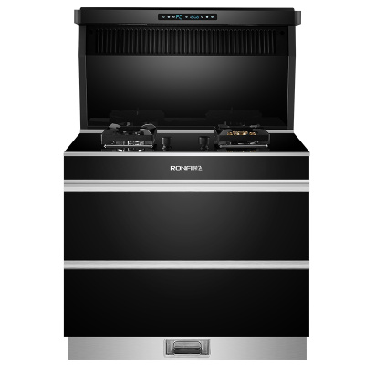 荣飞(Rongfei)旗舰弧形款一体集成灶一体灶台下排侧吸式油烟机厨房环保灶自清洁家用消毒柜套装(天然气)