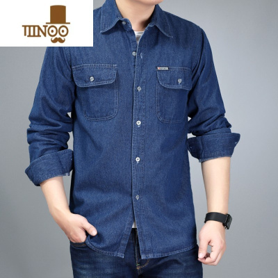 YANXU超薄牛仔长袖衬衫男工地电焊工防烫耐磨工作服干活劳保服