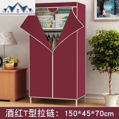 美帮汇简易衣柜现代简约布组装仿实木出租房家用卧室挂布艺衣橱收纳柜子