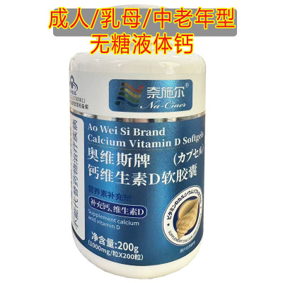 奈施尔奥维斯牌钙维生素D软胶囊200粒男女成人中老年型无糖碳酸钙维生素D3片三高糖尿病人缺钙导致的小腿抽筋补钙片