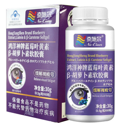 奈施尔鸿洋神牌浓缩蓝莓叶黄素β-胡萝卜素软胶囊60粒男女成人中老年人老人青少年儿童中小学生保护缓解眼睛视力疲劳护眼保健品