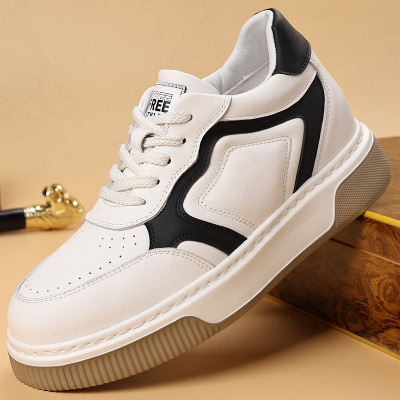 新款小白鞋真皮男潮鞋时尚百搭透气厚底增高面包鞋日常休闲板鞋