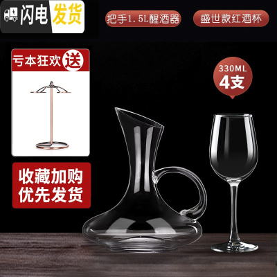 三维工匠家用玻璃红酒杯套装4/6只水晶欧式葡萄酒杯醒酒器高脚杯架 [送杯架]盛世4只+带把醒酒器