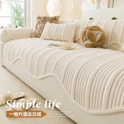 奶油风冬季沙发垫新款加厚毛绒坐垫一片式保暖冬天防滑盖布巾