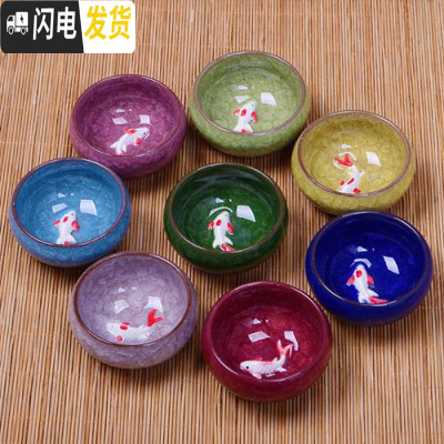 三维工匠窑变天目多色冰裂釉紫砂茶杯功夫茶具罗汉杯品茗杯陶瓷杯青瓷茶壶 冰裂鲤鱼杯冰裂鲤鱼8个