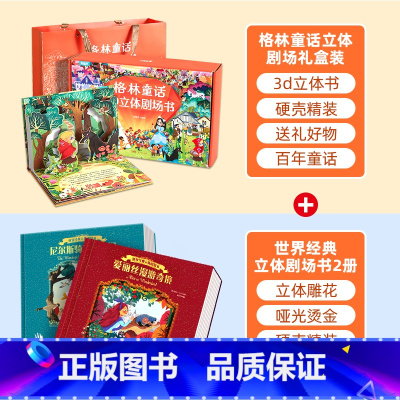 礼盒装格林童话立体剧场+世界经典立体书2册 [正版]格林童话立体剧场书礼盒装 幼儿园绘本阅读经典童话故事书儿童绘本3-4