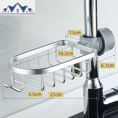 厨房水龙头置物架两边洗碗海绵沥水篮夹式太空铝抹布沥水架钢丝球 三维工匠