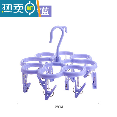 敬平塑料圆形多夹子晒凉袜子多功能宿舍学生家用晾衣夹挂钩圆盘晾衣架 紫罗兰12夹 1个