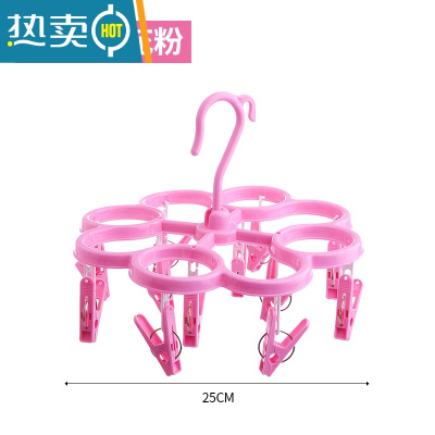 敬平塑料圆形多夹子晒凉袜子多功能宿舍学生家用晾衣夹挂钩圆盘晾衣架 樱花粉12夹 1个