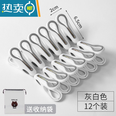 敬平晾衣夹强力防风的晾晒小夹子塑料家用多功能晾衣架固定凉衣服 素白大号/12只装[送收纳袋*1]