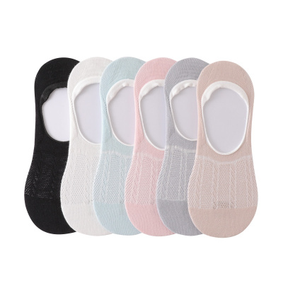 浪莎6双袜子女短袜浅口夏季薄款纯棉透气网眼隐形全棉防滑夏天船袜女