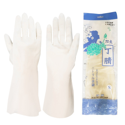 海斯迪克 HK-781 丁腈手套 清洁工具洗碗防穿刺丁晴手套 新料洗衣耐磨防水乳胶手套 38cm白色光里S(2副)