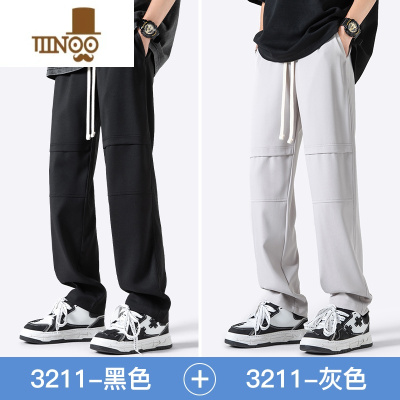YANXUWOODSOON男士休闲裤直筒垂感冰丝长裤夏季薄款美式高街阔腿运动裤