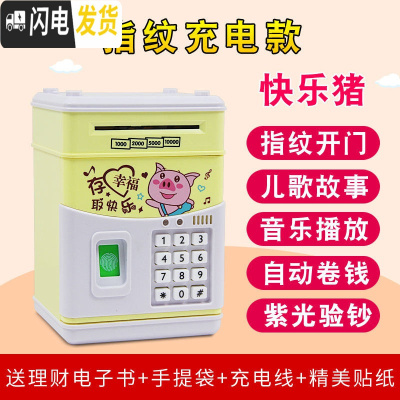 三维工匠存钱罐儿童密码箱储蓄网红创意抖音款防摔男孩女孩女生可爱 新升级★快乐猪★指纹充电款储蓄罐