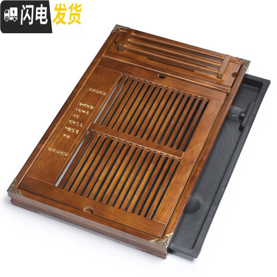 三维工匠 功夫茶具抽屉式排水茶盘 家用实木储水茶盘茶台茶海茶托盘 21黑檀纹双荷叶科技木