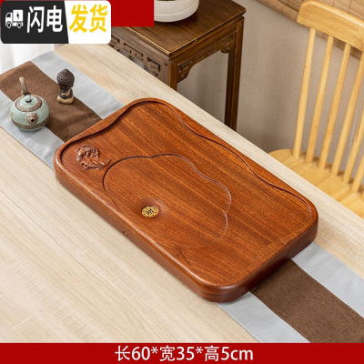 三维工匠整块实木茶盘家用花梨木茶台托盘简约大号功夫茶具排水茶海电木款 双鱼60×35cm