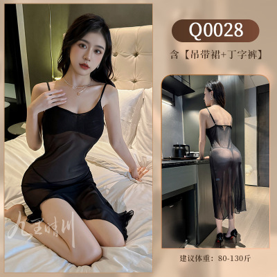 九里晴川内衣开叉透感吊带睡裙性感蕾丝镂空显瘦ins成人用品 Q0028 均码