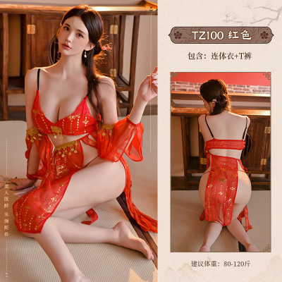 九里晴川异域风情套装红色唐风霓裳金线绣花透视情趣内衣纯欲 九里晴川TZ100[异域风情套装-红] 均码