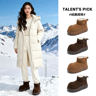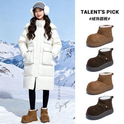 磨砂皮加绒保暖平底雪地靴女靴冬季百搭圆头毛毛靴复古短靴女