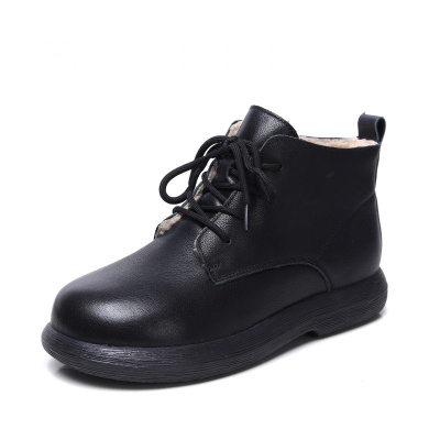 头层牛皮雪地靴女冬季新款羊羔毛复古潮流百搭系带保暖马丁靴