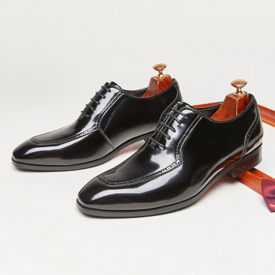 男士亮面正装皮鞋低帮透气商务休闲皮鞋系带漆皮男鞋四季