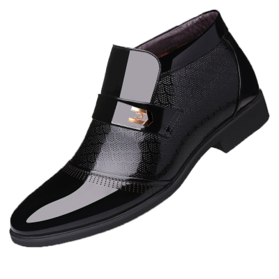 迪罗尼卡皮鞋男款商务正装软皮漆皮高帮英伦风加绒保暖切尔西短靴子
