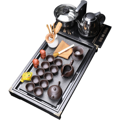 博为功夫茶具套装紫砂整套茶壶茶杯仿乌金石陶瓷面板实木茶盘茶海 圣龙西施配马到成功快速炉