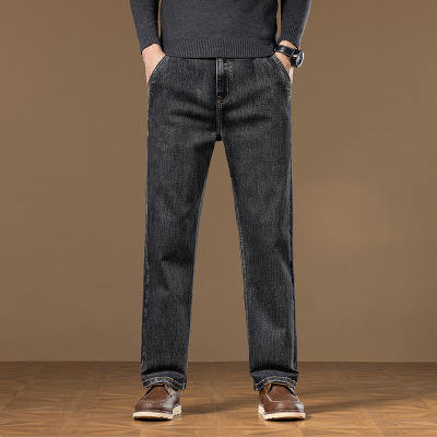 秋冬新款高端牛仔裤男士宽松直筒中年百搭阔腿弹力休闲裤子男