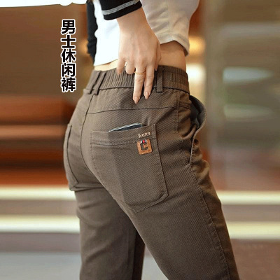 加绒休闲裤男新款秋冬弹力修身直筒松紧腰百搭商务潮流长裤子