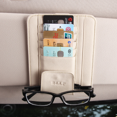 博利良品车用遮阳板卡片夹 BL1618名片票据夹 汽车眼镜夹 多功能车载收纳米色