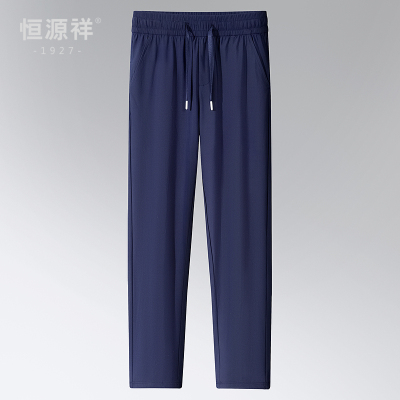 恒源祥休闲裤男2025夏季新款高弹中腰松紧抽绳休闲直筒薄款长裤