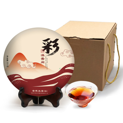 滇香阁 普洱茶熟茶彩2499g整箱 云南勐海七子饼357g*7传统工艺干仓茶无添加年货礼品礼盒
