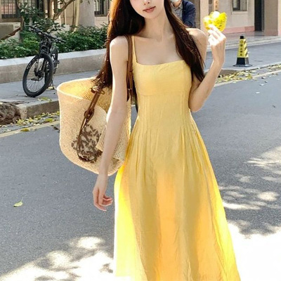 法式色吊带连衣裙女装夏季新款设计感收腰气质长裙海边度假裙子