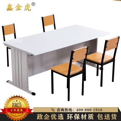 鑫金虎 办公家具钢木学校图书馆阅览室桌椅组合防火面板阅览桌钢架长条桌会议培训桌