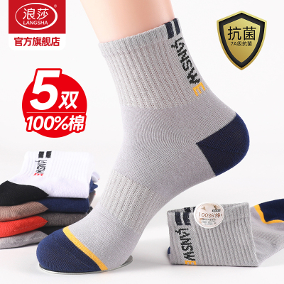 浪莎袜子男纯棉中筒袜春秋季抗菌防臭男袜青少年运动袜秋冬长袜