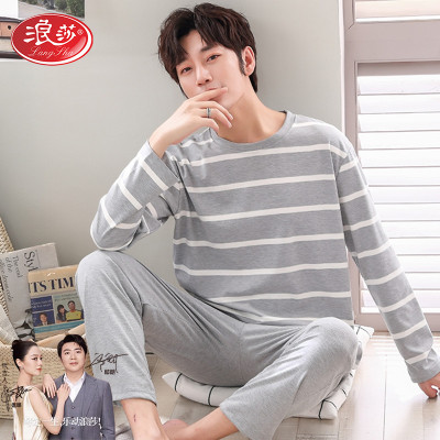 浪莎睡衣男士春秋款纯棉长袖可外穿男款四季休闲条纹加大码家居服