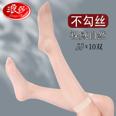 浪莎丝袜女短夏季薄款防勾防滑中筒肉色黑色棉底水晶丝耐磨短丝袜