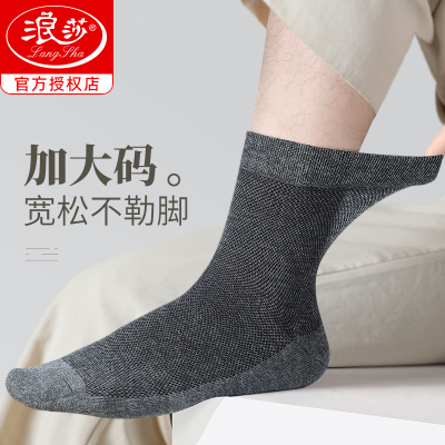 浪莎加大码袜子男士夏季薄款纯棉44-48码中筒袜青少年夏天全棉袜