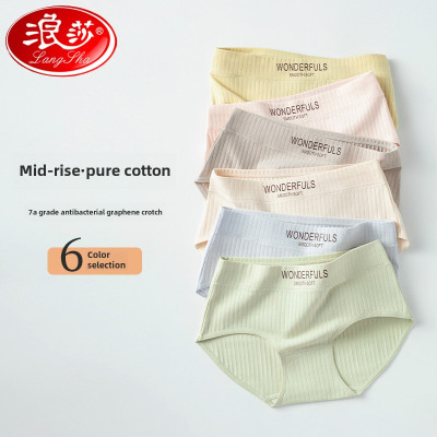 浪莎纯棉内裤女士石墨烯抑菌裆无痕透气中腰2025新款女生三角裤