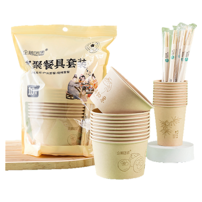 户外一次性餐具三件套纸碗筷便携式套装露营食品级野餐小饭碗