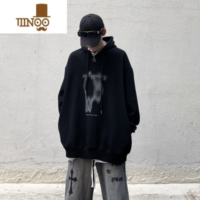 YANXU非潮勿近高街美式潮牌复古重影人像设计感连帽卫衣男宽松上衣