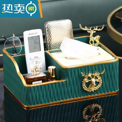 敬平简约现代家居装饰纸巾盒欧式轻奢家用客厅茶几遥控器收纳抽纸摆件 绿色边纹多功能纸巾盒A