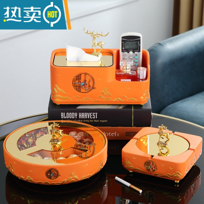 敬平简约现代家居装饰纸巾盒欧式轻奢家用客厅茶几遥控器收纳抽纸摆件 新款百搭橙色三件套A