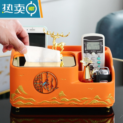 敬平简约现代家居装饰纸巾盒欧式轻奢家用客厅茶几遥控器收纳抽纸摆件 新款百搭橙色纸巾盒A