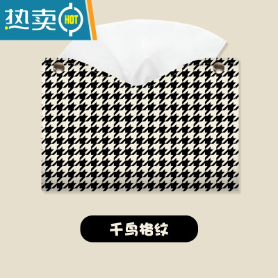 敬平郁金香花轻奢风车载抽纸收纳盒创意客厅纸巾套家居装饰纸抽盒 千鸟格-抽纸盒纸巾盒
