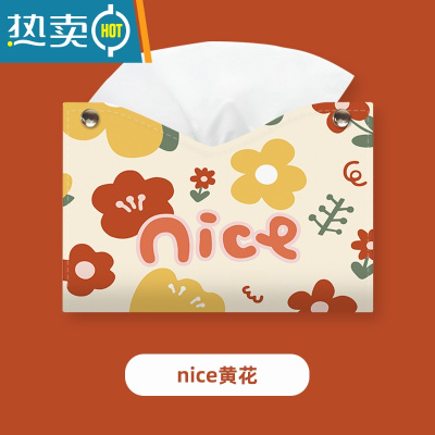 敬平郁金香花轻奢风车载抽纸收纳盒创意客厅纸巾套家居装饰纸抽盒 黄色nice小花-抽纸盒纸巾盒