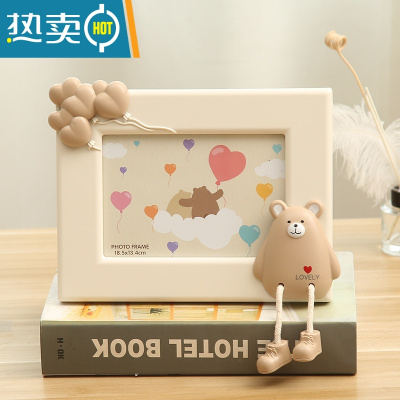 敬平7寸创意可爱相框摆台照片摆件儿童房桌面相架卡通老鼠家居装饰品 胖胖鼠 横 浅咖 7寸+洗相片