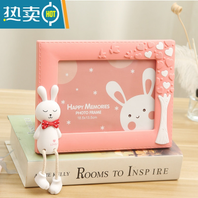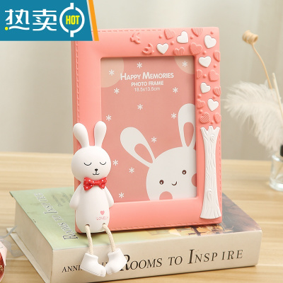 敬平7寸创意可爱相框摆台照片摆件儿童房桌面相架卡通老鼠家居装饰品 害羞兔 竖 深粉 7寸+洗相片