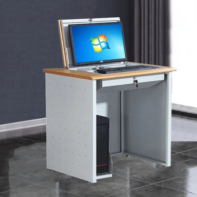 鑫虎威 办公家具单人位翻转电脑桌隐藏显示器式电脑桌部队学校电教室机房培训桌