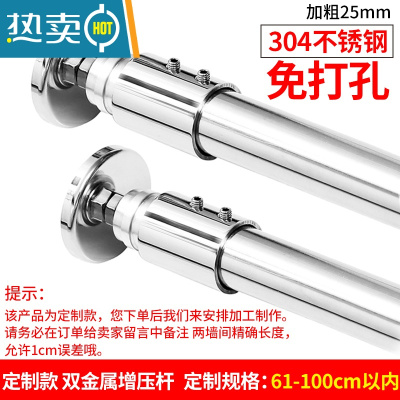敬平免打孔304不锈钢浴帘杆浴帘套装衣柜直杆型窗帘杆晾衣杆 承重 升级 [双金属增压] 加粗25mm 直杆61